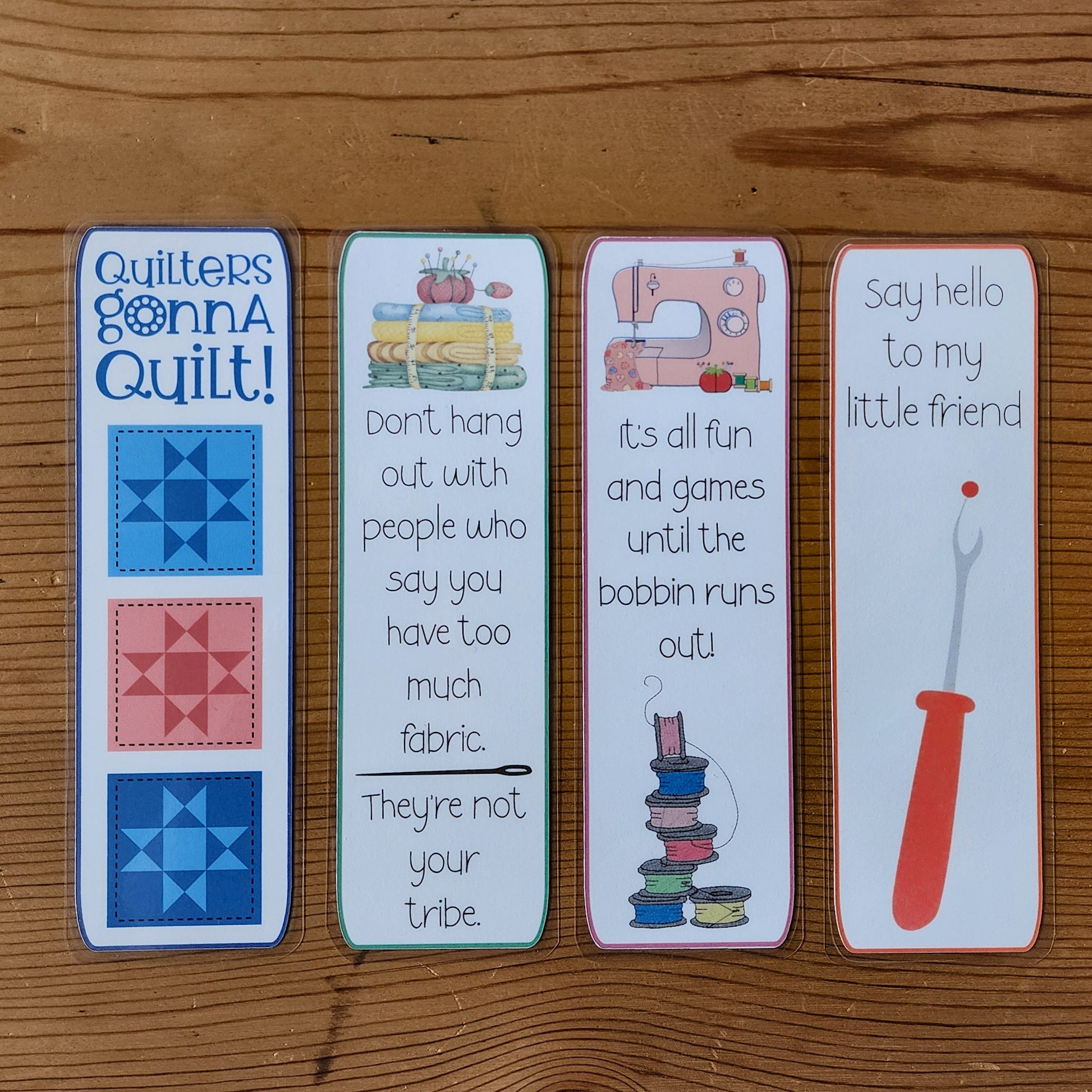 Set of 4 Sewing Quilting Themed Laminated Bookmarks